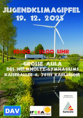 Am 19. Dezember 2025 findet der Jugendklimagipfel 2025 unter dem Motto „Zukunftskompetenzen für eine nachhaltige Generation“ in der Großen Aula des Helmholtz-Gymnasiums Karlsruhe statt. Von 10:00 bis 13:00 Uhr erwartet die Teilnehmenden ein vielseitiges Programm aus Fachvorträgen, Podiumsdiskussionen, Workshops und interaktiven Mitmach-Ateliers.